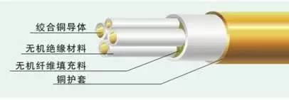 1. 導 體:多股銅線絞合;2. 絕緣層:耐高溫、不燃燒的無機絕緣材料;3. 銅護套:縱包焊接并軋紋;4. 外護層:低煙無鹵材料